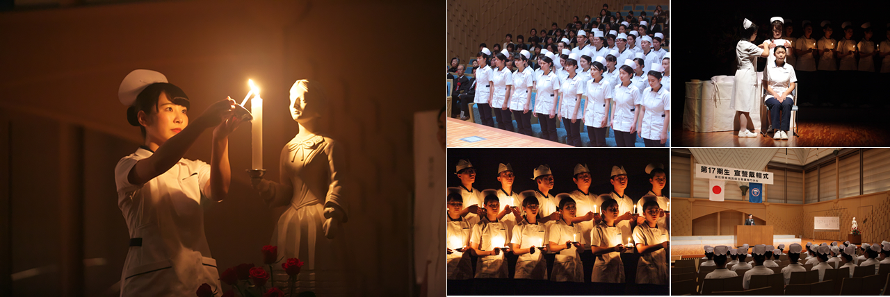 看護専門職者として、役割と責任を自覚し、母校の伝統を守るその証として、学生一人一人が、自分らしい看護師になることを宣誓します。