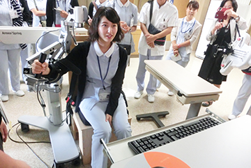 ロボットアームを使ってのリハビリを体験