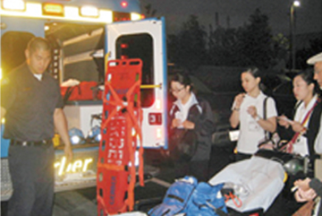 学生が乗る救急車