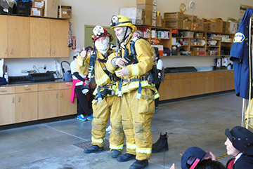 アバロン消防署での防火服の着用体験